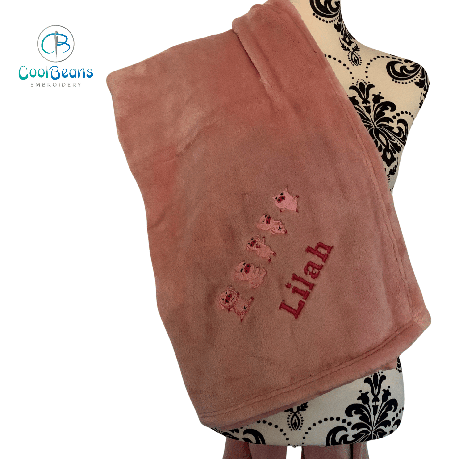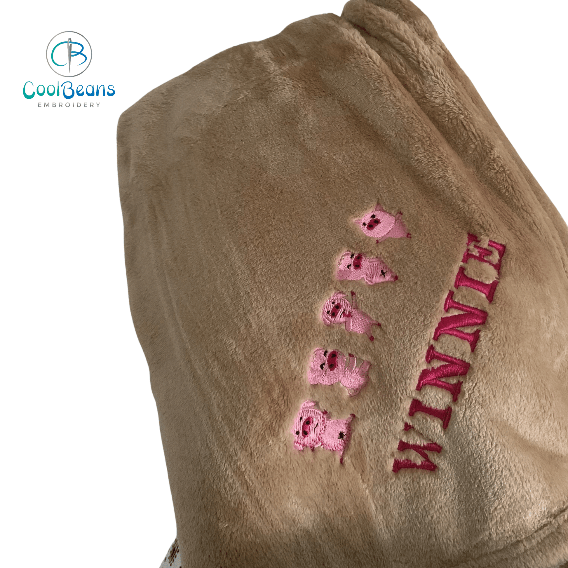 - Treat your kiddos to a cosy companion that's all theirs! Our Little Pigs Personalised Children's Blanket is embroidered with their name and made from superior high-pile fleece fabric for unbeatable warmth and comfort. Plus, with its single layer, super soft feel, and hemmed square edges, it's luxe lounging at its best.